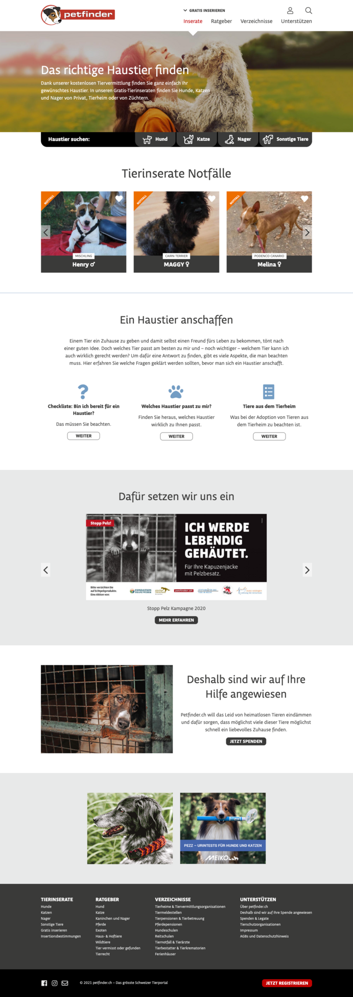 Petfinder.ch hilft Privatpersonen und Tierheimen, für herrenlose Tiere ein neues Zuhause zu finden. Das Inserieren von Tieren auf unserer Plattform ist kostenlos.